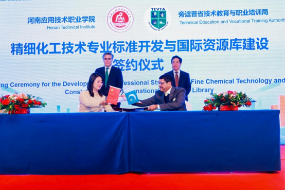 会上,与会各方围绕职业教育国际化发展展开深度对话与多视角研讨,进一步凝聚合作共识,共绘发展蓝图。我校与巴基斯坦方面就共建“中巴化工大河工坊”及精细化工技术专业标准开发与国际教学资源库建设,签署战略合作协议。